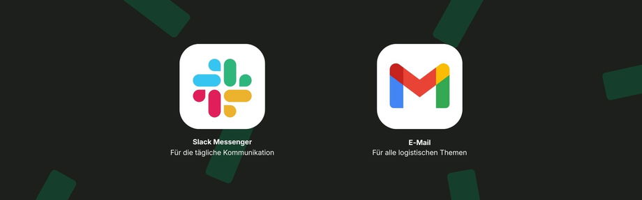 Die E-Mail nutzen wir in der Regel nur noch für Themen bezüglich Rechnungen und anderen logistischen Themen die die Zusammenarbeit betreffen. Sollten mal Informationen außerhalb des Slack Channels stattfinden, kannst du diese entweder als "Direkt Nachricht" auf Slack verfassen oder per E-Mail versenden.
